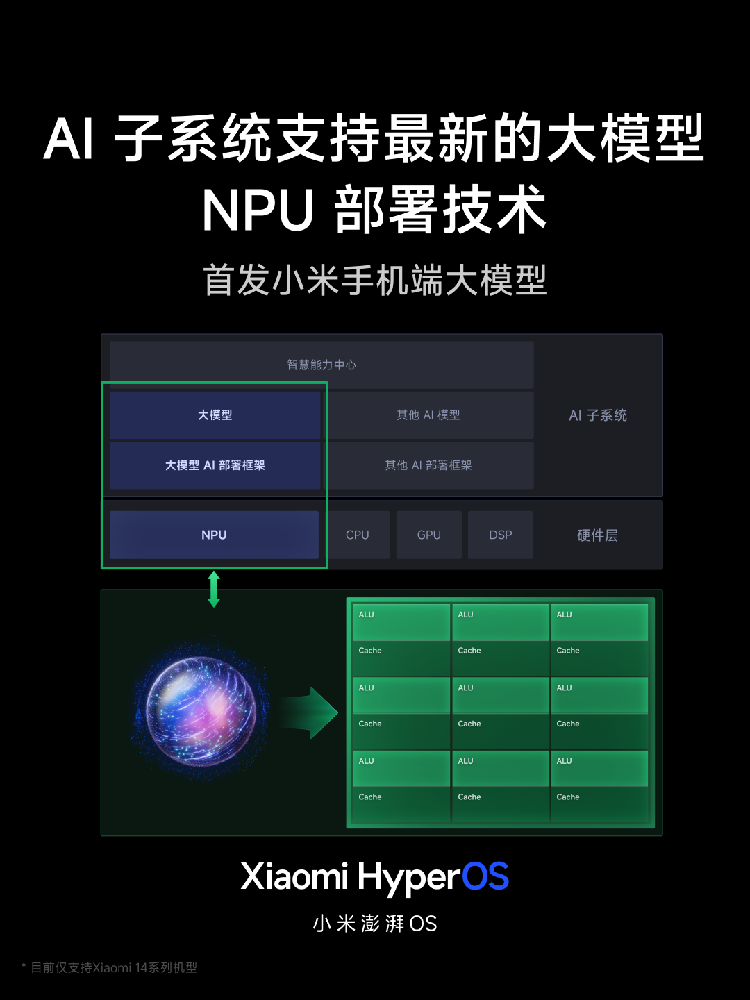 小米这次还公布了大模型上手机的最新进展。据金凡介绍,小米的 AI 子系统支持最新的 NPU 端侧部署技术,包括文生图、AI 扩图等功能,都可以直接在端侧运行,不需等待云端算力排队。