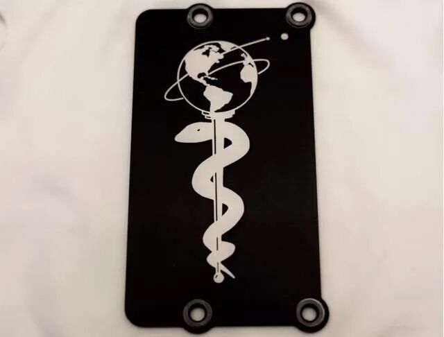 还有一块铝板被放置在毅力号底盘左边,位于中间轮和后轮之间,有 8×13 厘米大小。上面画着一支盘绕着蛇形图案的手杖,也称蛇杖,在古希腊文化中,这个标识代表医院,毅力号用蛇杖支撑着地球的这种方式在向世界各地的医务工作者致敬。