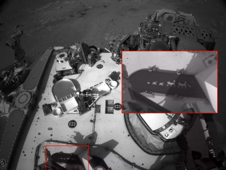 这个恢弘的计划还要好多年才能完成,但细心的网友已经发现,毅力号浑身的彩蛋估计率先破了人类太空探索计划的彩蛋记录。JPL——喷气推进实验室,也就是为 NASA 建造和操作行星航天器负责机构,让这次的彩蛋都相当有「技术含量」。