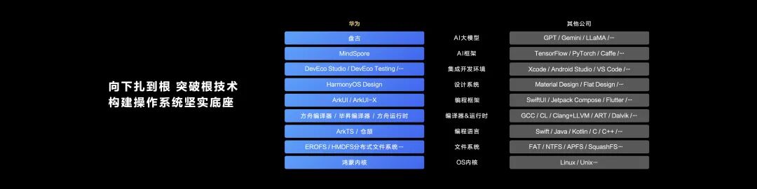 余承东也再次强调了鸿蒙系统的自研能力:「我们看到很多的手机厂家,发布它的 OS,其实只是在 Android 操作系统上改了 UI,改名叫操作系统。但是鸿蒙操作系统是真正的操作系统,有我们的内核,有我们的文件系统、编程语言、编程工具等一系列开发系统。」余承东表示。