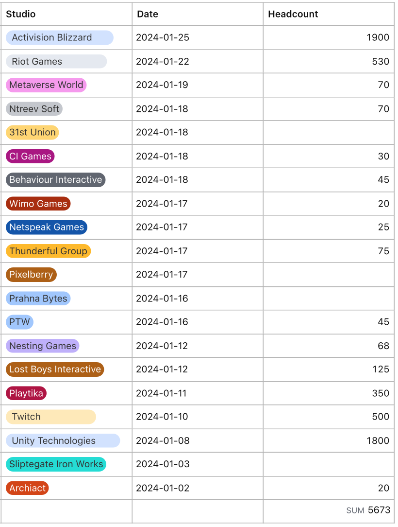 仅今年 1 月,全球游戏行业就裁了 5600 余人,占去年总数的一半。