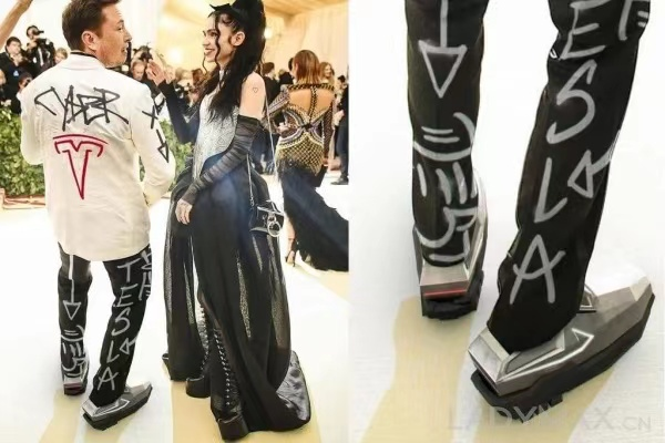 这家 RTFKT Studios 已经不是第一次出现在人们视野当中了,去年 RTFKT Studios 的官方 Ins 上发了一张马斯克在 2018 年 Met Gal 典礼上走红毯的照片,照片上马斯克穿着一双很「酷」的球鞋,瞬间引发网友们的讨论。但随后被证实,马斯克根本没穿这双鞋,或者说这双鞋根本就没有实体,只是被 P 上去的。这是由 RTFKT Studios 设计的一双「虚拟鞋」,设计者表示灵感源自马斯克推出的电动皮卡 Cybertruck。