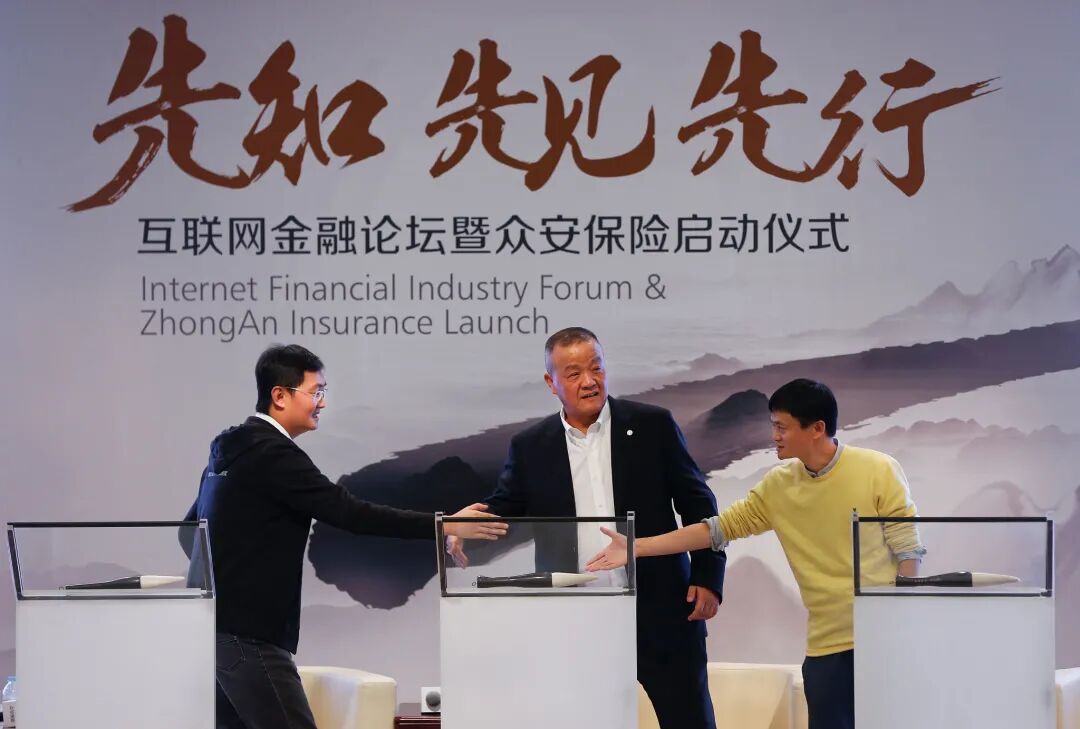 2013 年马化腾、马明哲和马云在众安保险成立现场|视觉中国