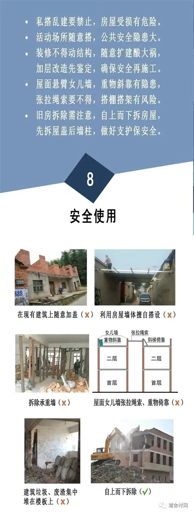 看到这些,想到汤亮2018年转型乡村房产的初心和使命:革新中国广大农村乡镇房屋的安全与品质,并且改善农村乡镇生活,帮助用户实现农村逐渐告别无序化、非专业化,并逐渐向着规范化、专业化发展,个性化定制设计,标准化服务体验,高品质建房保障。不忘初心,牢记使命。 一定不要划走了,最后这点最重要,给大家普及下农村自建房安全常识,一定要收藏转发。