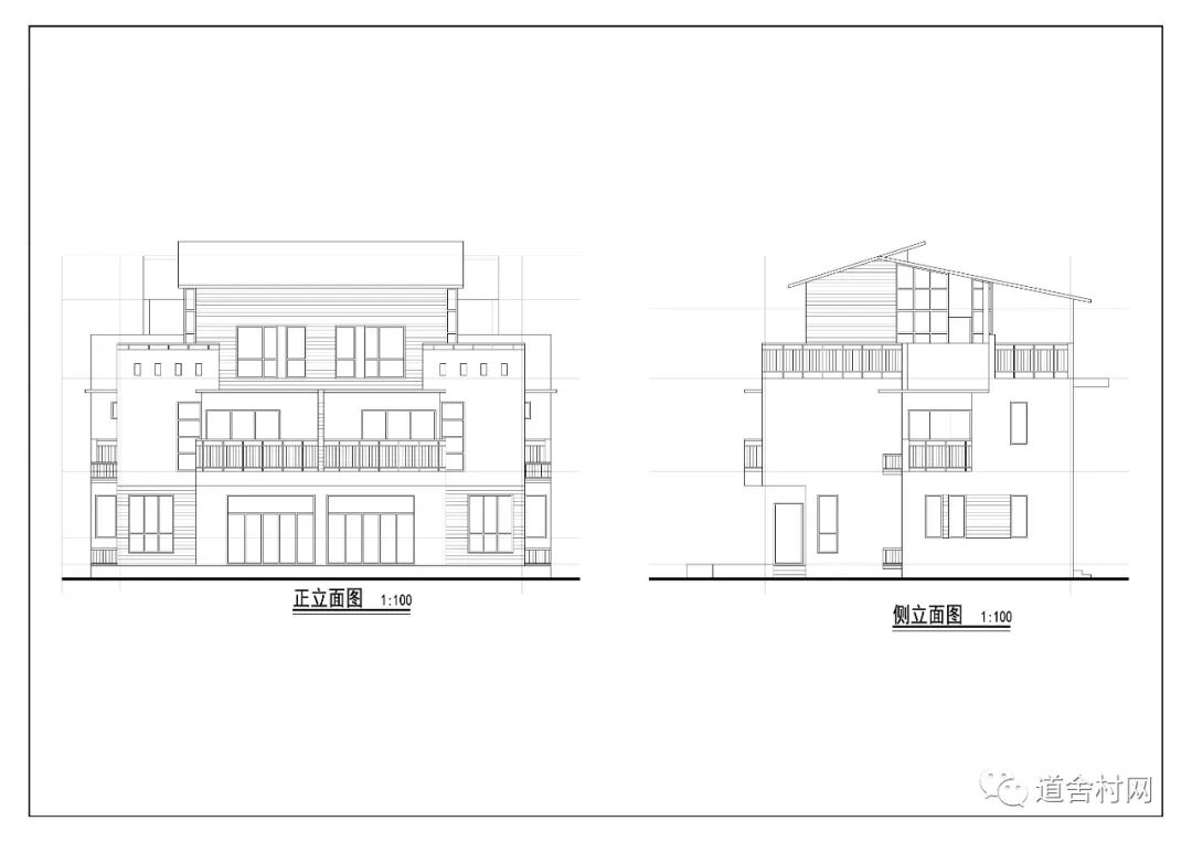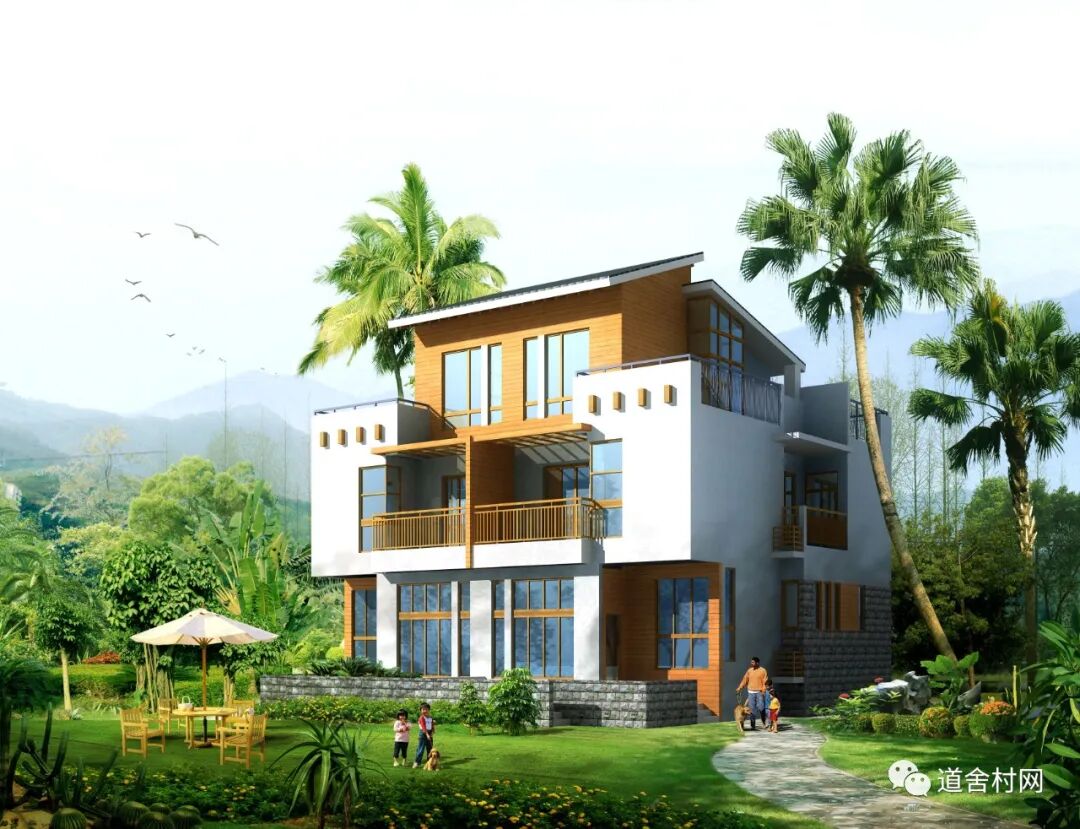 道舍村网科技:13.8乘10.5农村3层现代双拼别墅
