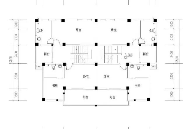 我们再看看二层平面布局,二层北边是卧室。西北角设有卫生间,西边有个阳台,南边是带独立卫生间和书房的卧室,并且拥有一个超大阳台。可以跟媳妇傍晚在上面搞点烤全牛和品82年的雪碧。左右两边对称布局。