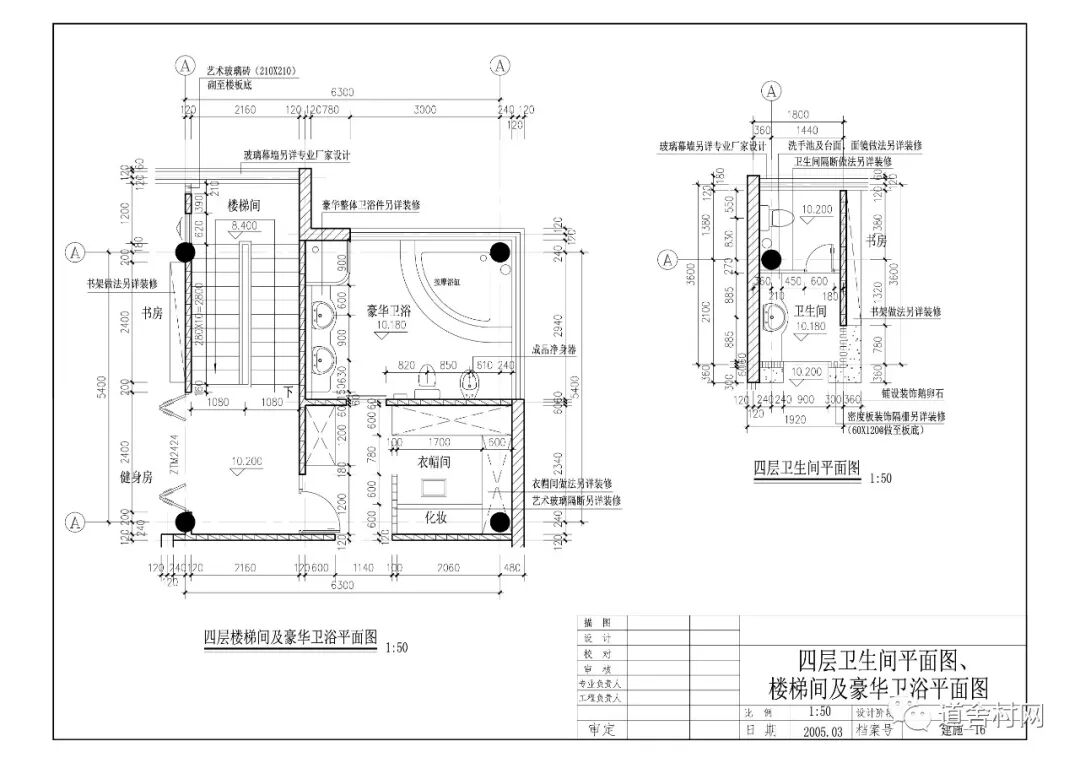 这是四层卫生间平面图、楼梯间及豪华卫浴平面图