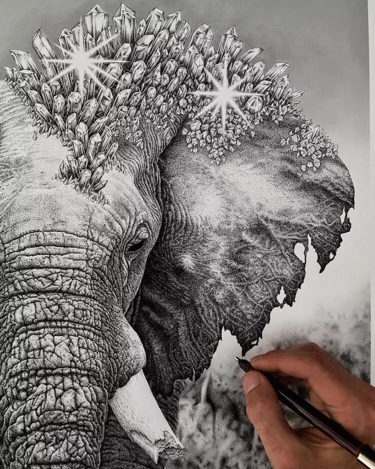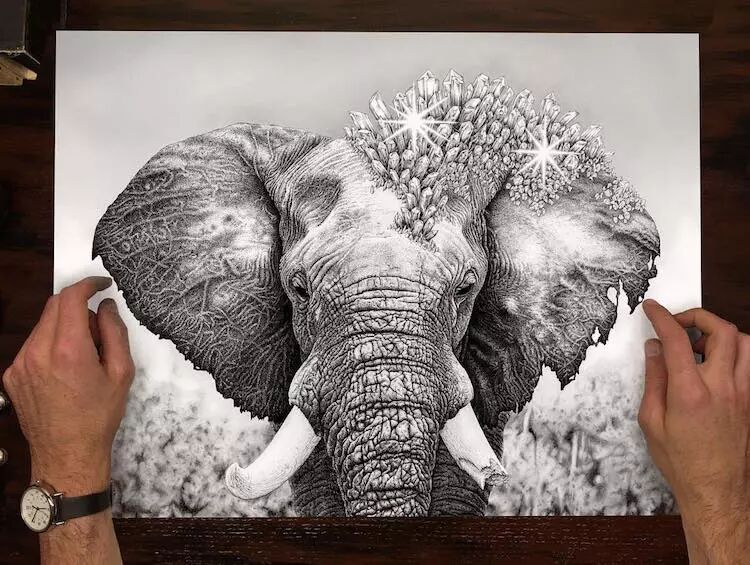 这幅水晶大象,他画了整整8个月,画家都画的抓狂了