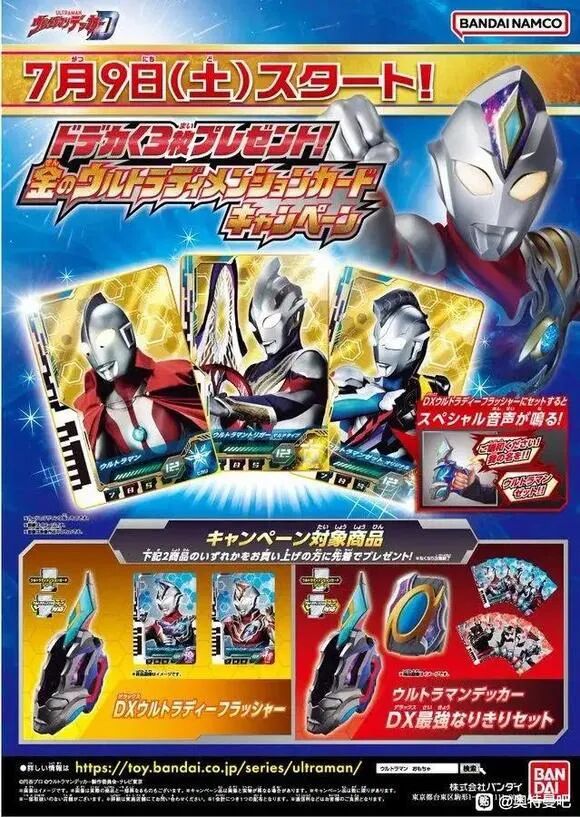 首先就是这个拥有追加特典的DX奥特D闪光剑最强变身套装的相关情报了,根据吧友爆料,这次初次入手DX奥特D闪光剑的话还会有特典版卡片,这三张卡片分别是土豪金版的初代奥特曼、特利迦和泽塔奥特曼卡片。至于这三张特典卡片能否在剧中出现就不可而知了。