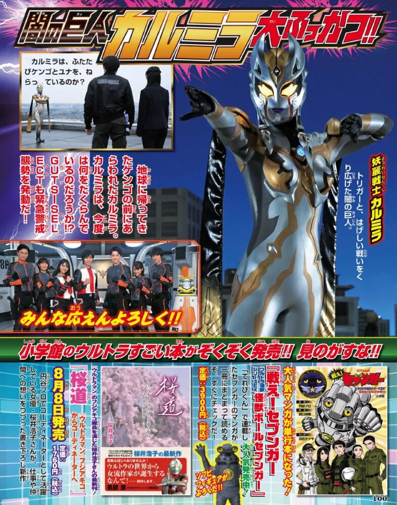 卡尔蜜拉对于观众来说都不会陌生了,毕竟是令和时代的卡蜜拉。虽说在塑造方面不如卡蜜拉,但拥有上坂堇和本身造型就比较耐看的加持下,卡尔蜜拉还是蛮有人气的。单就特利迦tv剧的塑造自己是有点无法接受,不过舞台剧中的卡尔蜜拉和特利迦还是蛮甜的,而在这次的德凯奥特曼故事里,卡尔蜜拉也会回归,同时一同登场的还有剑悟以及结名。