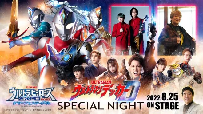 《德凯奥特曼》特别之夜时间:8/25出席者:・松本大輝(カナタ役)・村山優香(イチカ役)・大地伸永(リュウモン役)・小柳友(アサカゲ役)・宮澤佐江(サワ役)・黄川田雅哉(ムラホシ隊長役)・武居正能(メイン監督)・SCREEN mode(OP主題歌アーティスト)・影山ヒロノブ(EDテーマアーティスト)