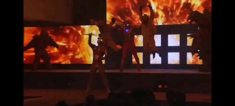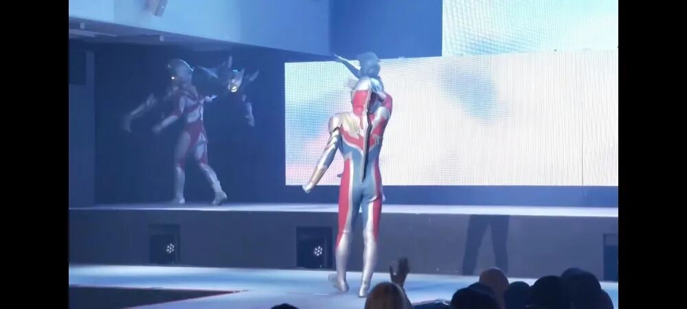 而艾斯和泽塔奥特曼这边对上了亚波人以及德斯特鲁多斯,这两位都是各自奥特曼的宿敌。在这里泽塔也是化身成为红色的厨子形态,不得不说舞台剧的设定是真的蛮离谱的。不过艾斯在这里的表现是真的帅气,利用手中的利刃直接展现了当初北斗在剧中的招牌动作,从而完成了秒杀。