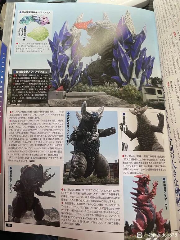 斯菲亚哥莫拉斯菲亚细胞有将怪兽的遗传因子信息改写变成横斯菲亚合成兽的力量。哥莫拉和斯菲亚融合之后就变成了斯菲亚哥莫拉。在第3集里登场。第3话是强壮型初登场回,找能当强壮型对手的怪兽时就想到了哥莫拉。于是就打算让它和斯菲亚融合变成斯菲亚哥莫拉。哥莫拉有EX哥莫拉和电子哥莫拉很多变种,这次则是把骷髅哥莫拉的皮套进行了改造。选哥莫拉理由之一也是因为它的皮套种类比较多,能和斯菲亚打造融合形态。而且哥莫拉在新生代里也是很常见的怪兽,我打算给一直关注这个系列的观众带来新鲜的观感。机会难得肯定要让奥特曼和新怪兽对战。在这些个念头之下,所以我设定成了斯菲亚合成兽。同时也有创作方的一些情况,拿既存的怪兽皮套改造成斯菲亚合成兽也是适合本作的思考方式,是绞尽脑汁的结果。