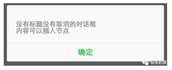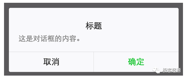 <view> <modal title="标题" confirm-text="确定" cancel-text="取消" hidden="{{modalHidden}}" bindconfirm="modalChange" bindcancel="modalChange"> 这是对话框的内容。</modal> <modal hidden="{{modalHidden2}}" no-cancel bindconfirm="modalChange2"bindcancel="modalChange2"> <view> 没有标题没有取消的对话框 </view> <view> 内容可以插入节点 </view> </modal> <view class="btn-area"> <button type="default" bindtap="modalTap">点击弹出modal</button> <button type="default" bindtap="modalTap2">点击弹出modal2</button> </view></view>