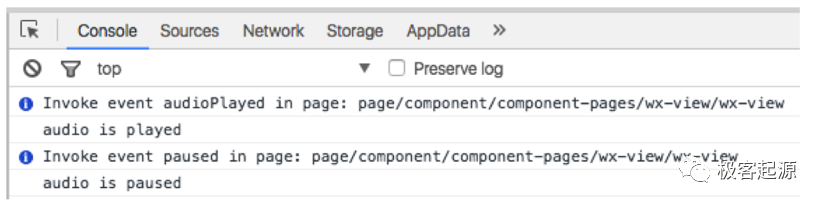 当播放和暂停音频时,会在Console中输出如图3所示的日志信息。