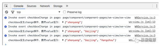 当选中前三个checkbox组件后,会输出如图3所示的日志信息。