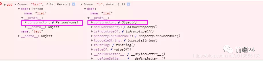 function Person(name) { this.name = name; console.log(name)}const liai = new Person('liai');const test = { name: 'a', date: liai,};// debuggerconst copyed = JSON.parse(JSON.stringify(test));test.name = 'test'console.error('ddd', test, copyed)