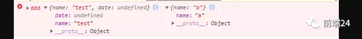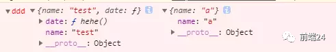 const test = { name: 'a', date: function hehe() { console.log('fff') },};// debuggerconst copyed = JSON.parse(JSON.stringify(test));test.name = 'test'console.error('ddd', test, copyed)
