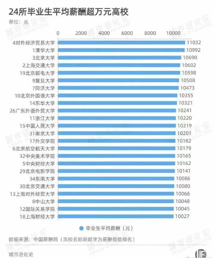 从图表可以看出,即便是清华北大毕业生,他们的实际平均薪资也不多1万多点而已。