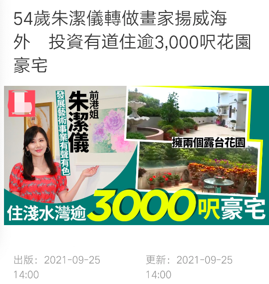 之前,朱洁仪居住在在浅水湾面积将近300平方米的大豪宅被曝光。