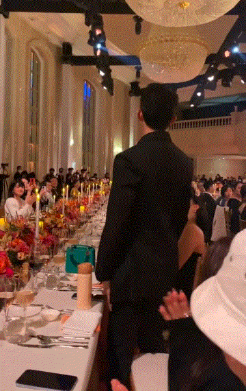 “你以为的晚宴是名利场觥筹交错,摇晃着盛满美酒的高脚杯,但实际上吴磊只爱自己的保温杯。只为成为一道亮丽的风景线。”