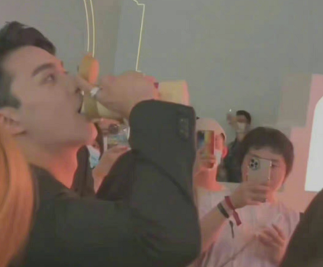但从曝光的照片人们却看到,尽管周围都是酒杯碰撞的声音,但22岁的吴磊却淡定地饮起他的保温杯。