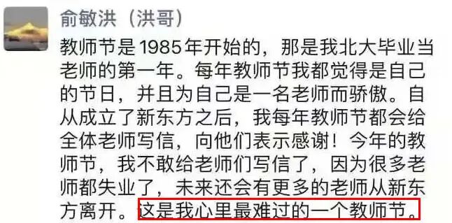 记得之前曝光出的俞敏洪朋友圈,他自己也坦言:这段时间是他最难过的日子。