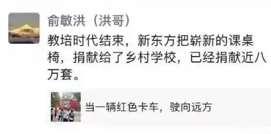 俞敏洪也做出了一系列决策。他先是向农村学校捐了价值近1亿的16万套桌椅。