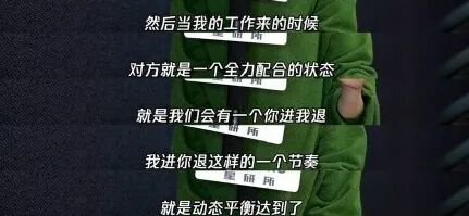 然后当我的工作来的时候,对方就是一个全力配合的状态,就是我们会有一个你进我退,我进你退这样的一个节奏,就是动态平衡达到了。”