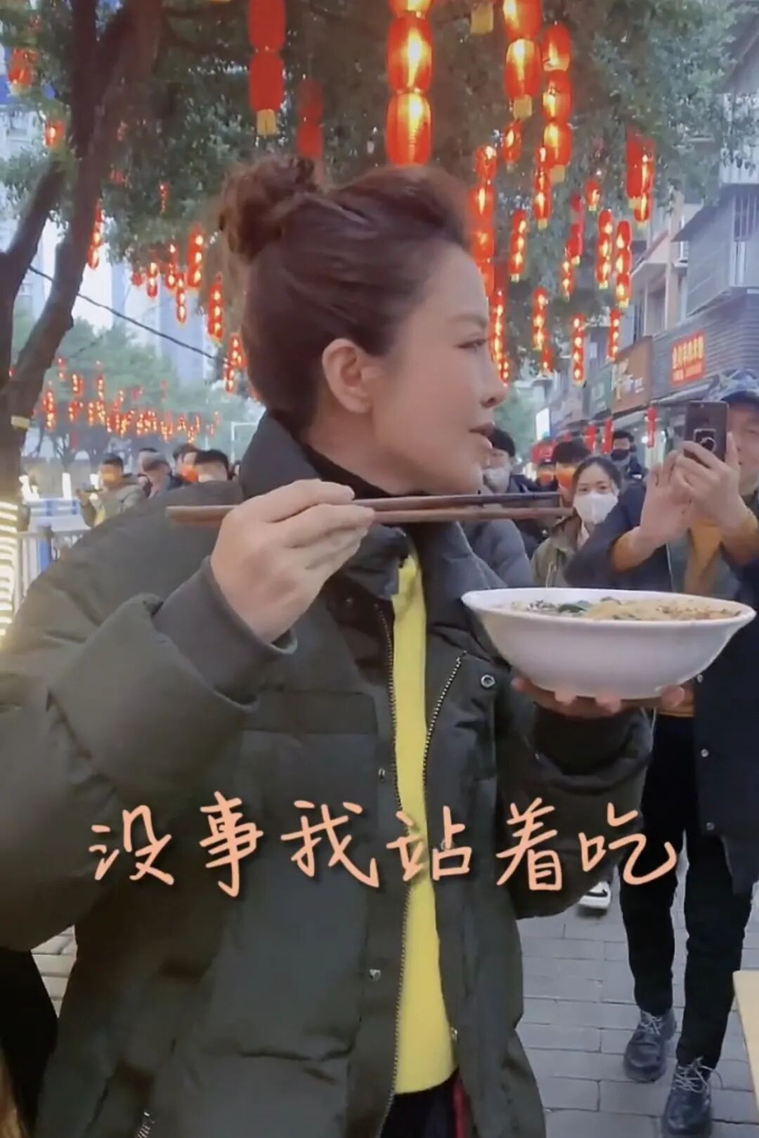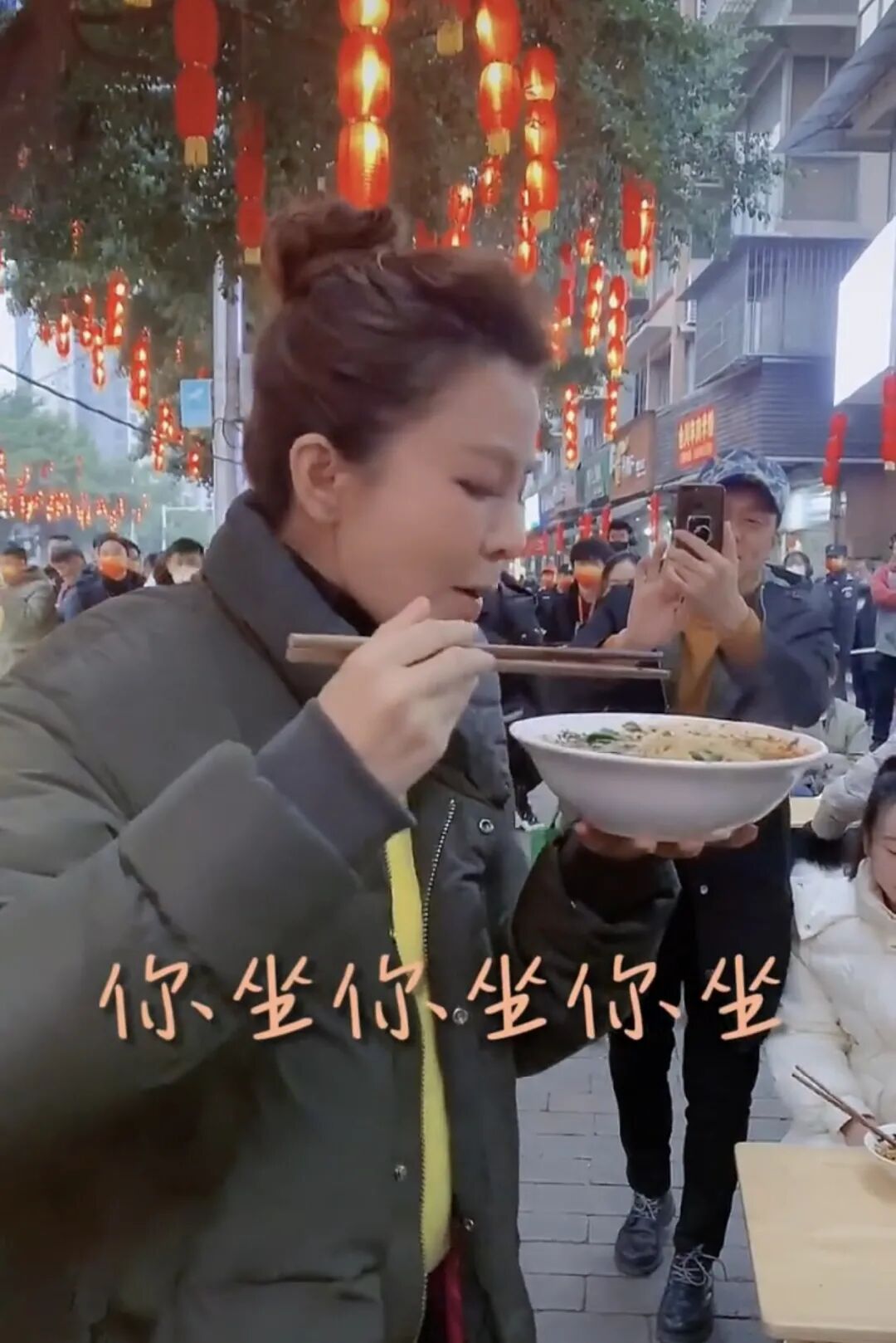 但朱迅听罢便摇摇头,招呼身边同样站着吃面的顾客坐下,自己却选择站着吃。