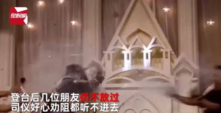 几个朋友参加婚礼,本该只是小闹几下,活跃下气氛而已,但这几个朋友似乎忘了场合,也忘了身份。