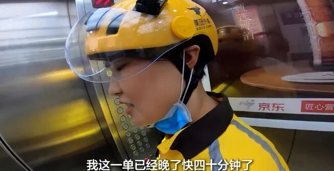 无奈之下,女博主最终只能委托跟拍人员帮忙送餐。