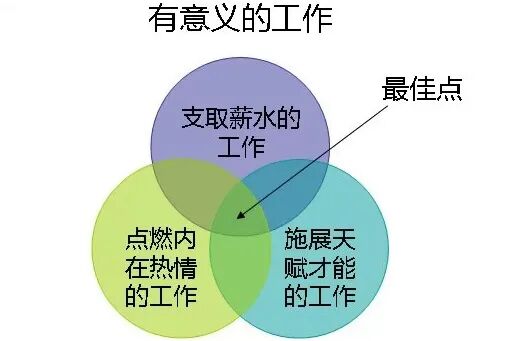 每个圆圈的工作,都有各自程度不同的工作意义,在谢尔教授看来,三个圆圈相交的“最佳区域”,则被认为是富有意义的工作。