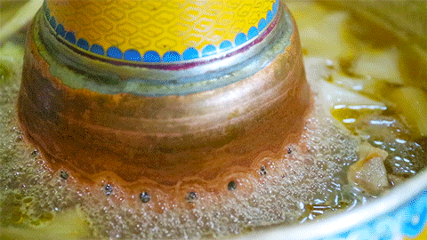 锅身有一圈气孔,模拟压力锅,能让羊肉在短时间内煮熟,这样就能不破坏羊肉的口感。