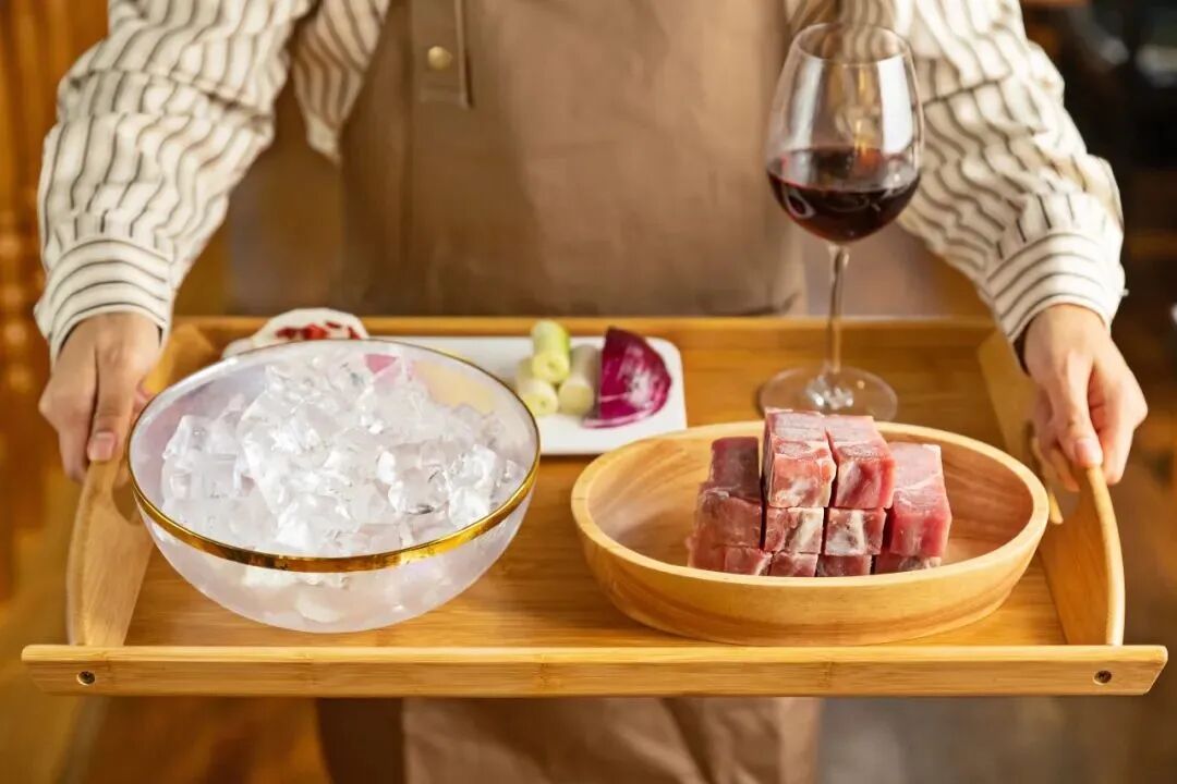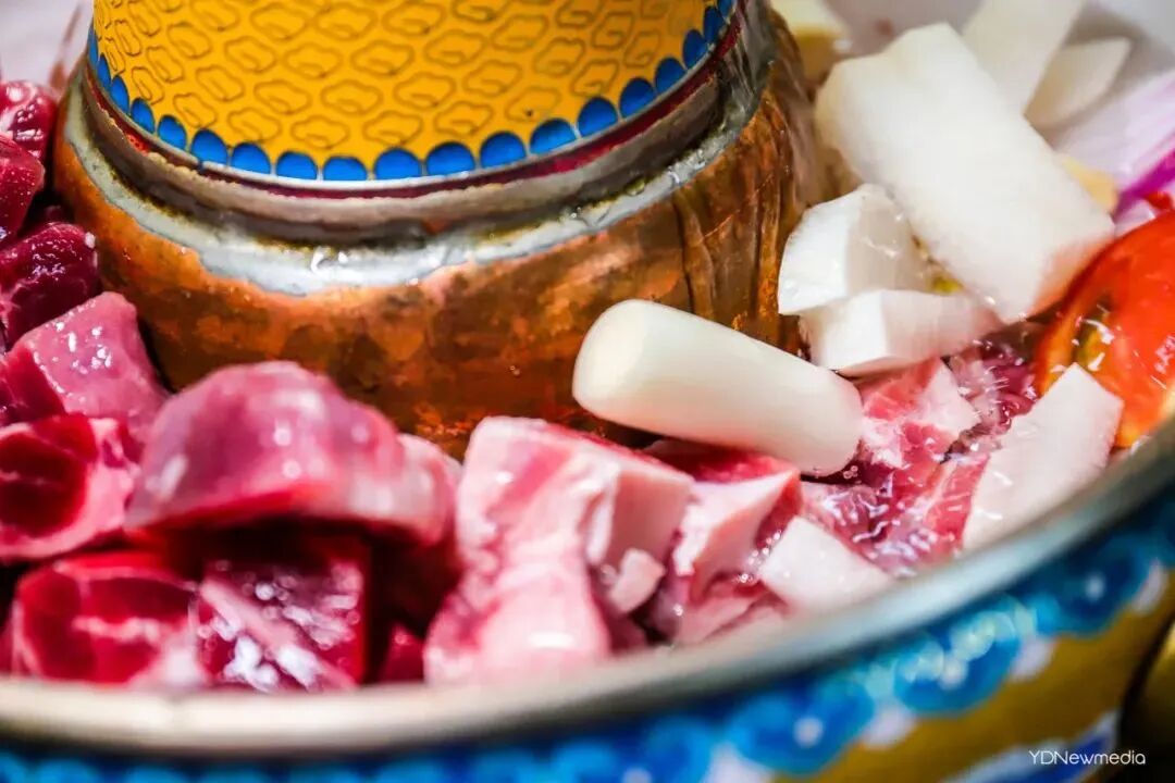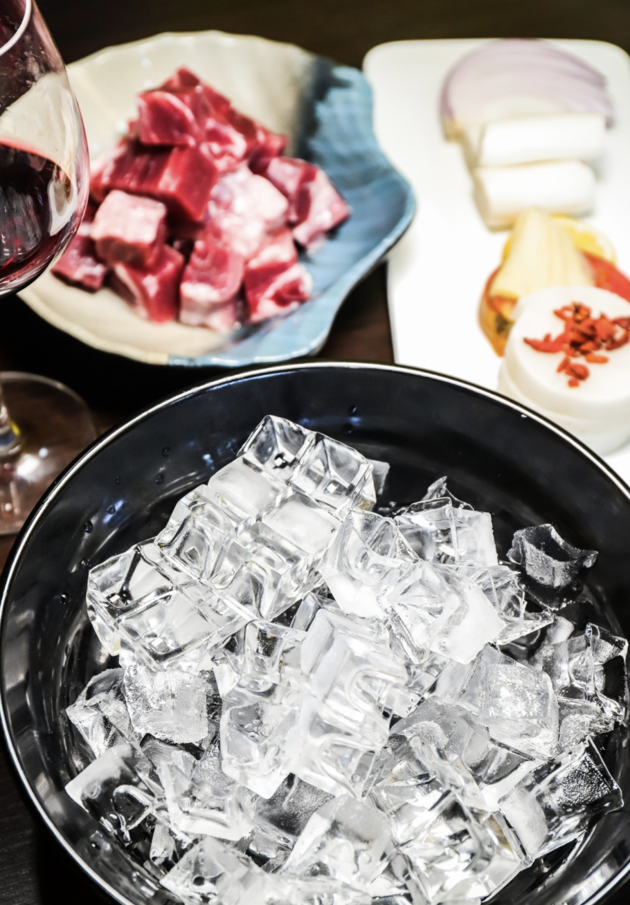 烹饪过程很简单,只需将羊肉和冰块倒入定制的火锅中。