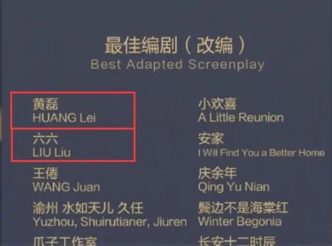 今年,六六的《安家》与黄磊的《小欢喜》共同入围了上海白玉兰奖的最佳改编编剧。