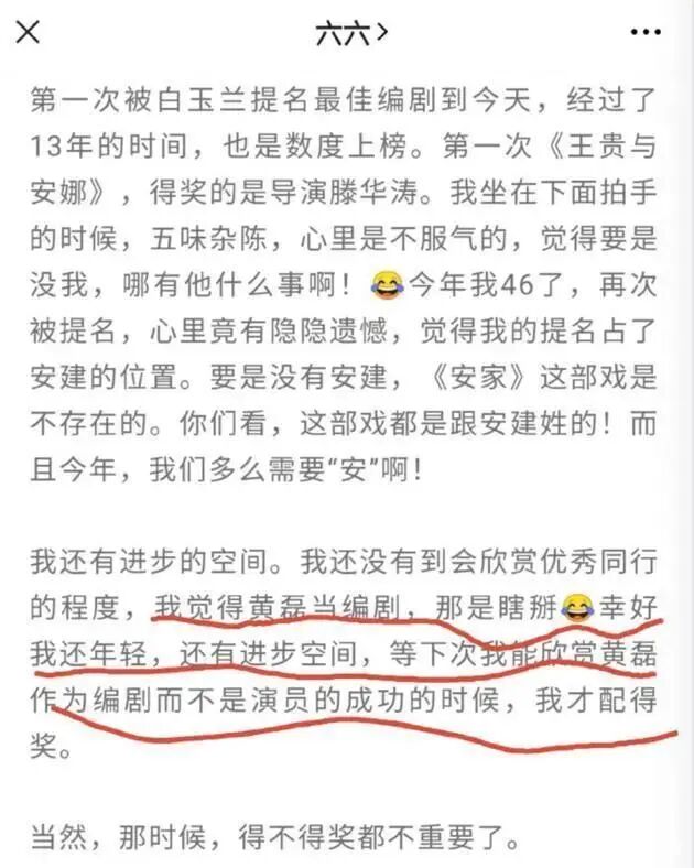 等下次我能欣赏黄磊作为编剧而不是演员的成功的时候,我才配得奖。”