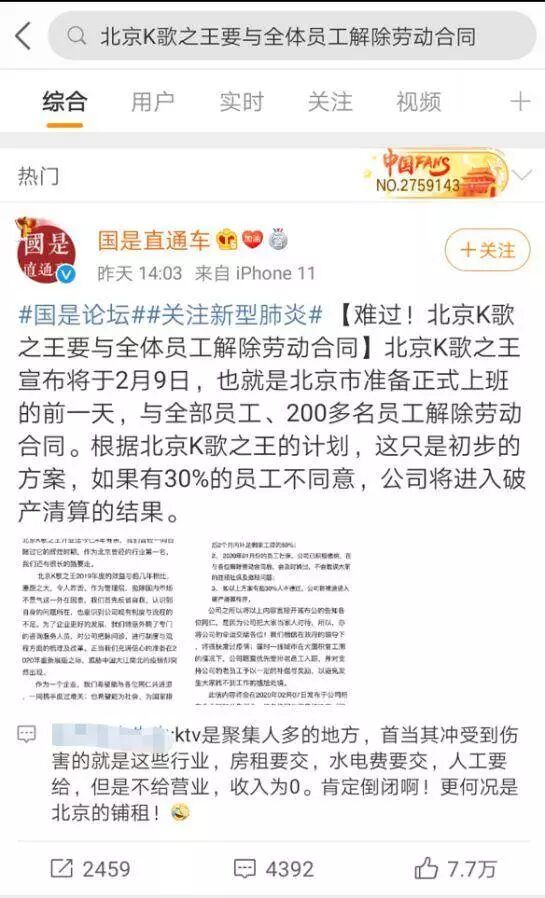2月9日,娱乐业龙头K歌之王发布的《总经理致全体员工的一封信》登上热搜。