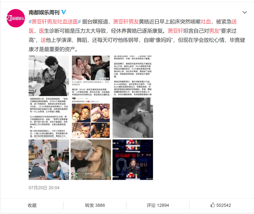 事情发生后,作为女友的萧亚轩,坦言自己对黄皓“要求过高”。