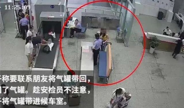 刘露一边对安检人员说等朋友来取,一边却偷偷把喷雾带入候车室。