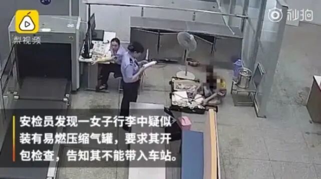 安检人员在刘露的行李箱中发现了易燃压缩喷雾,于是要求开包检查,且告知不能带入车站。