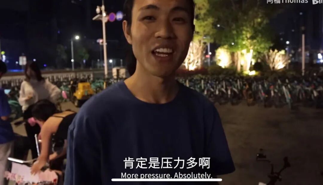 UP主追问他:“你羡慕那些跟你同龄的人吗?他们可以在外面玩不用拼搏?”