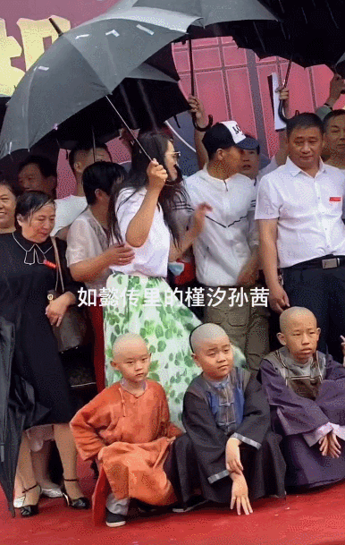 尽管如此,孙茜仍旧自顾自地撑伞,完全不顾自己伞上的水珠正在一滴一滴地散落在前排的孩子身上。