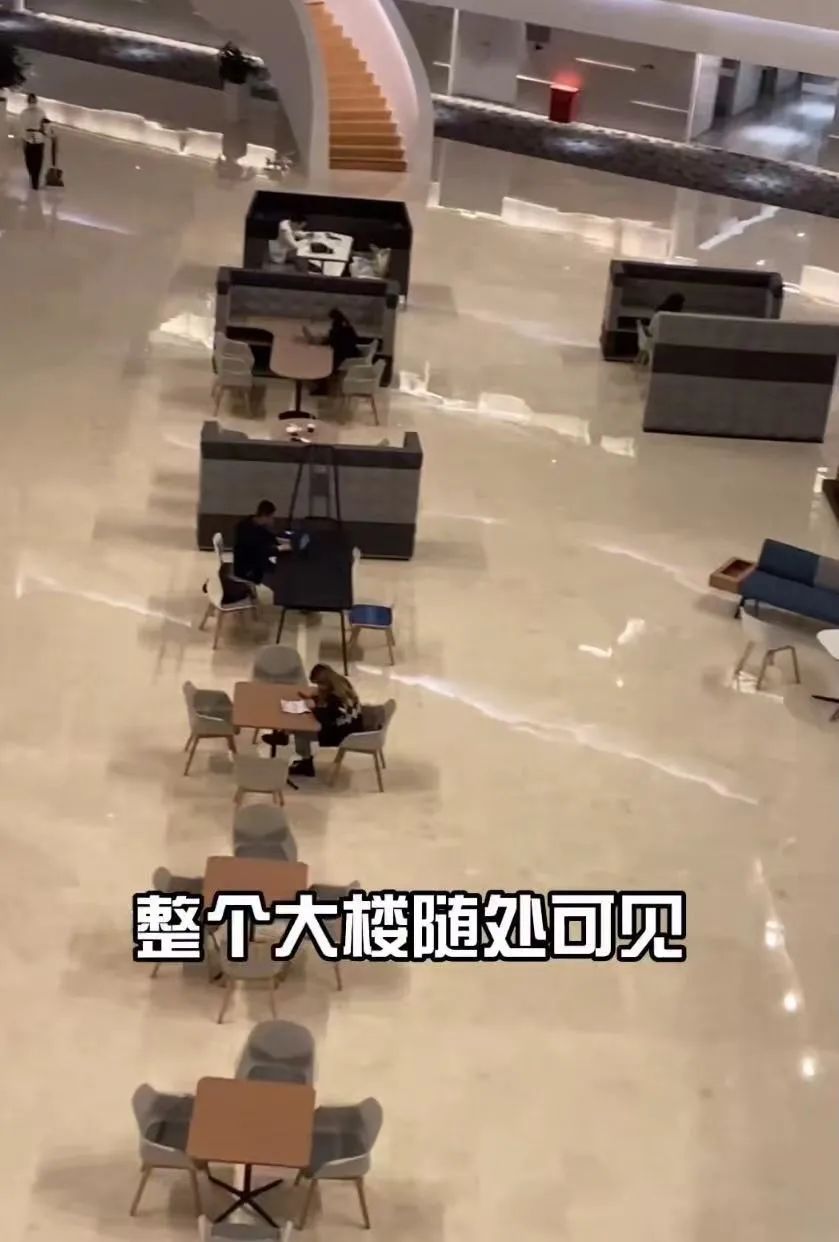大楼内部随处可见供员工休息的地方,宽敞的桌椅,合适的间距,随意找个椅子坐下,都能够很好地放松一把。