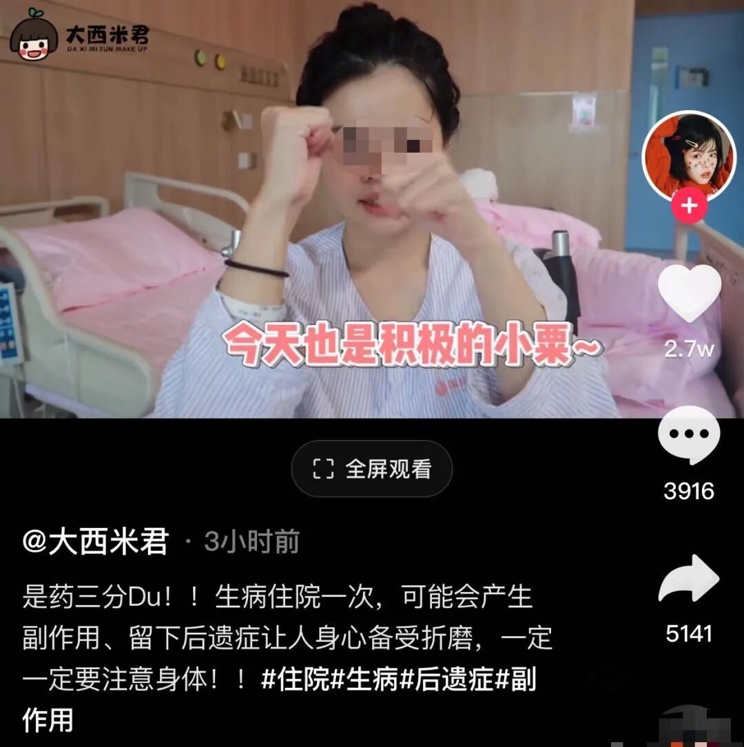 9月8日,26岁百万粉丝女网红“大西米君”,在社交平台更新了一段视频,罕见曝光了住ICU的近况。