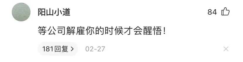 结果底下排第一的高赞评论是这样写的:等公司解雇你的时候才会醒悟。