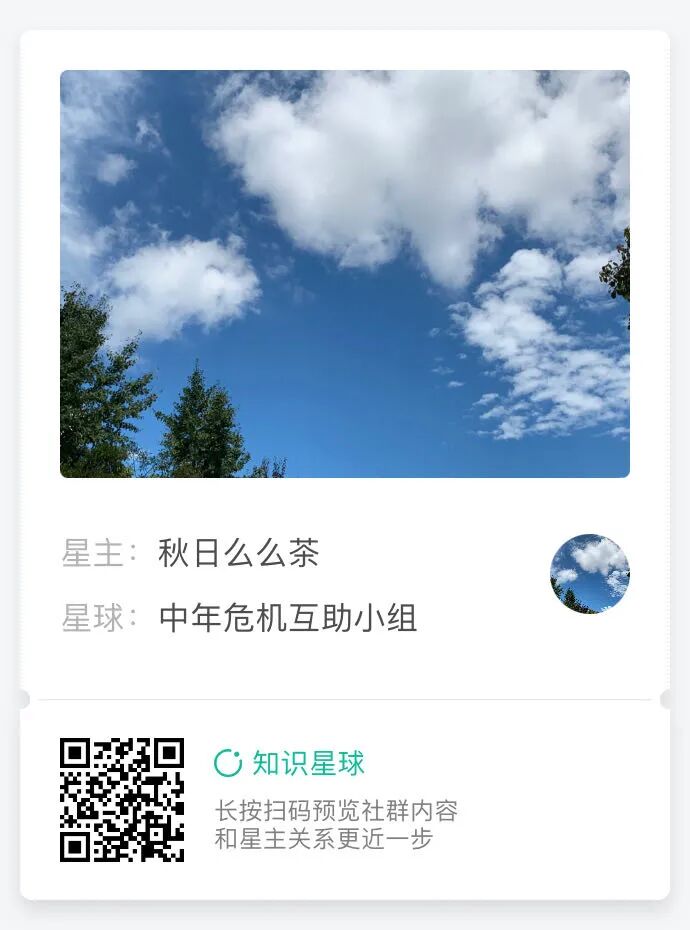 很多这里不方便说的话,我发到了下面的“中年危机互助小组”里,欢迎免费关注!