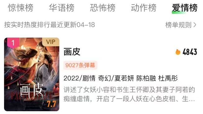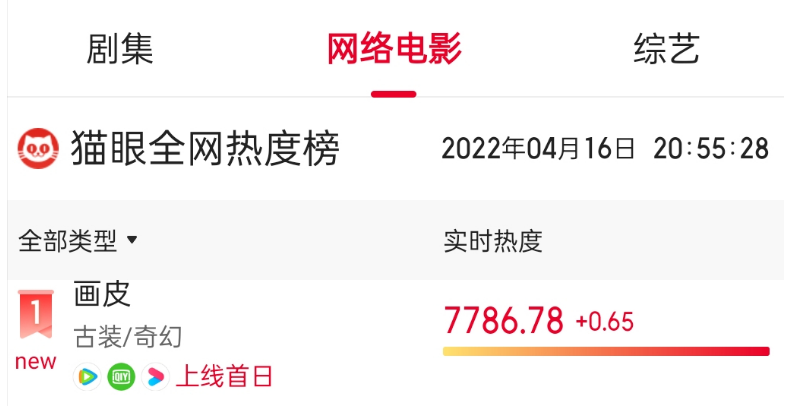 而网络电影《画皮》昨日上线仅8个小时,就登顶全网热度第一。