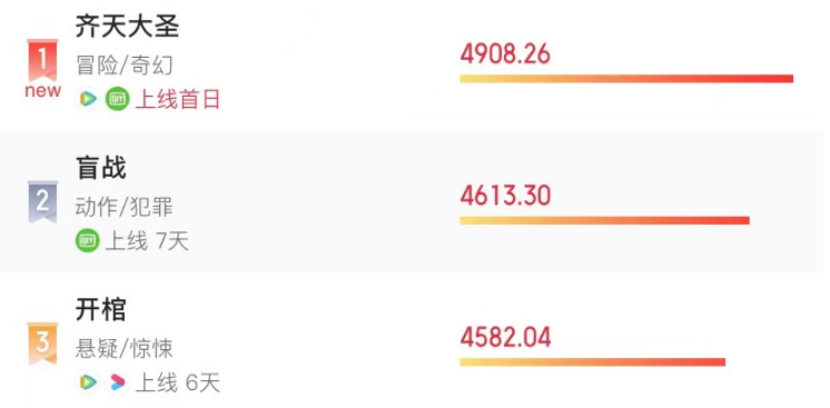 正因为如此,在没有大力宣传的情况下,《齐天大圣》上线首日便登上了热度榜第一。