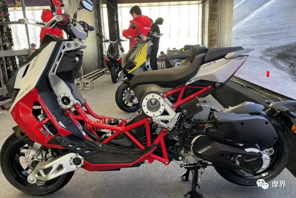 和目前的主流踏板车不同的是,该车拥有跑车元素的前脸、座椅和尾翼、裸露的钢管编织车架、镂空造型的连杆、独立转向和减震的前悬挂系统、圈速计时的仪表等等。